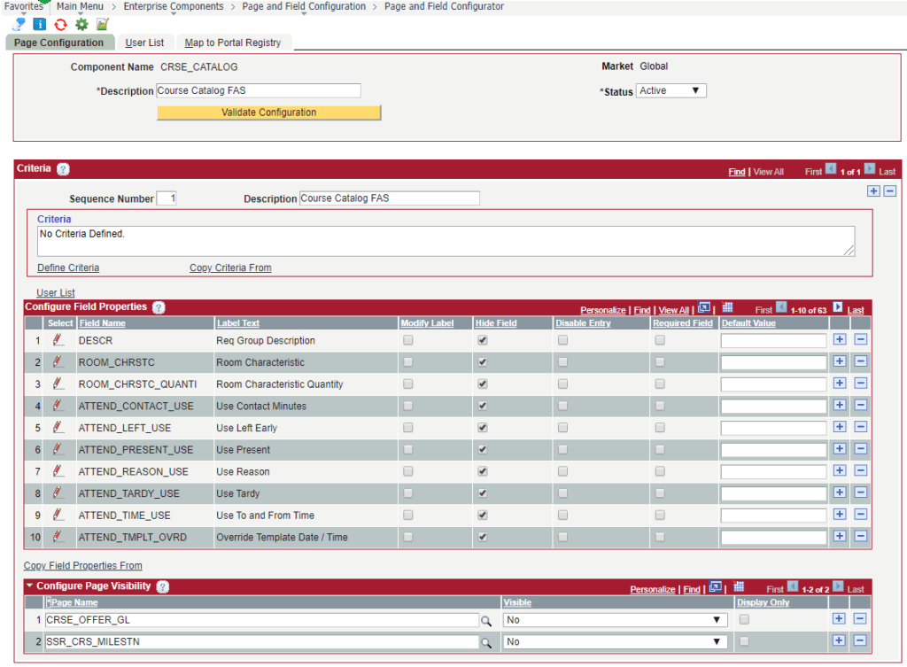 Using PeopleSoft’s Page and Field Configurator on a complex component like Course Catalog or Schedule of Classes offers a glimpse of some good tips and tricks about the tool. Page and Field Configurator could be a good solution to streamline these complex admin pages. Consider a use case where curriculum coordinators in different careers use different features of Course and Class; the undergraduate career ignores the Milestone and GL Interface pages and skips another 63 fields in the Course Catalog when creating new courses!
